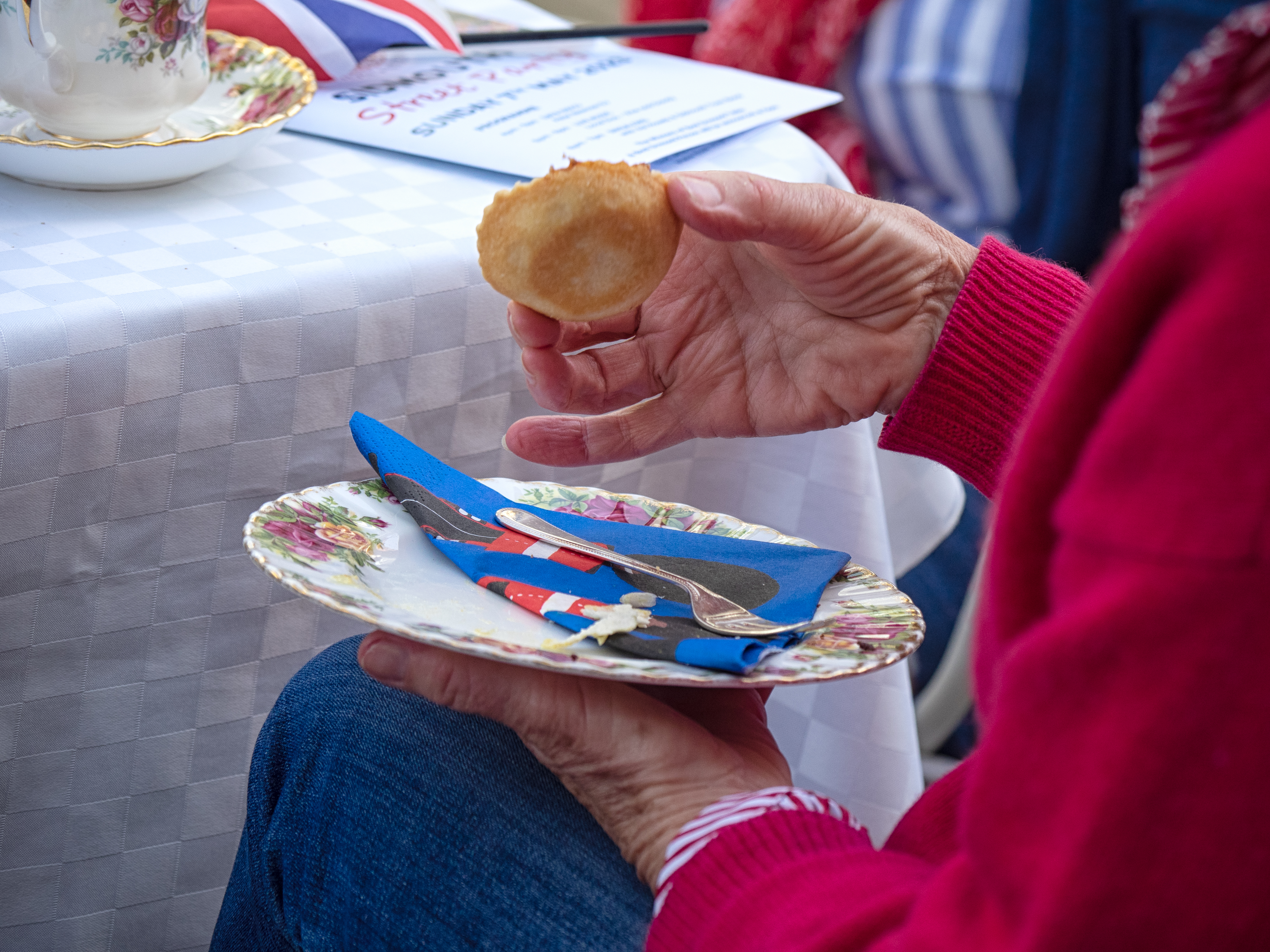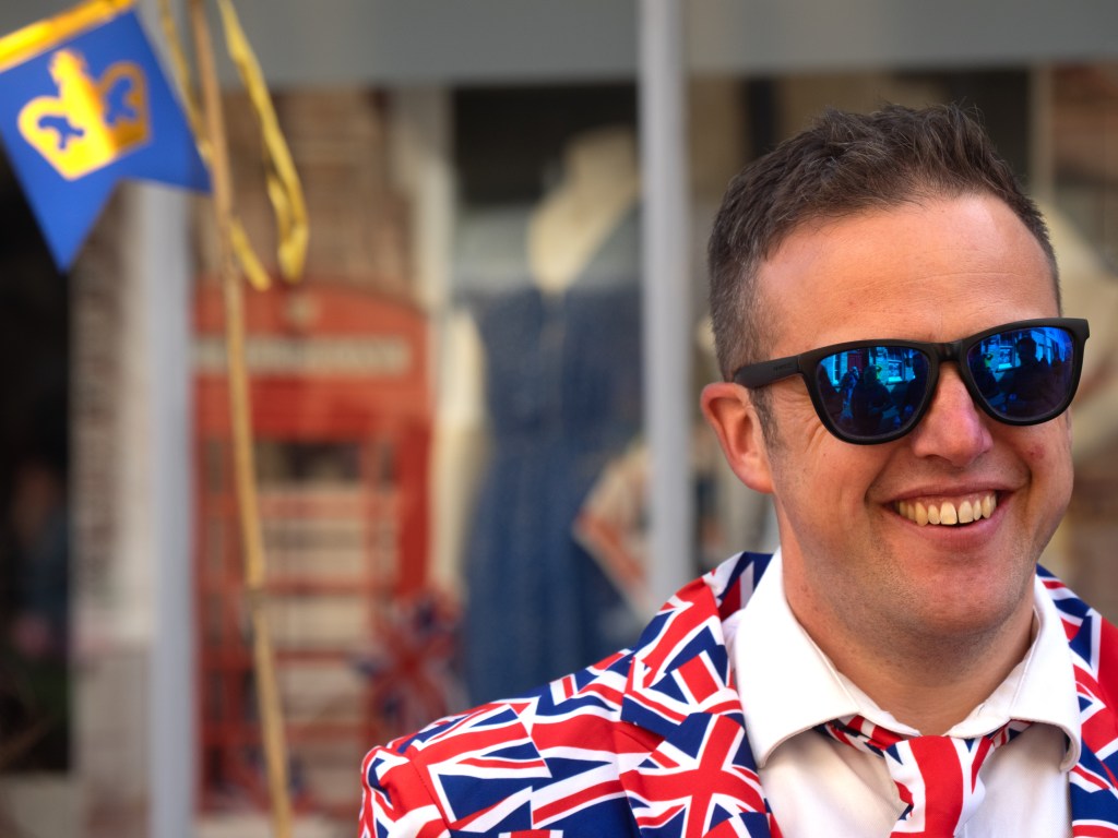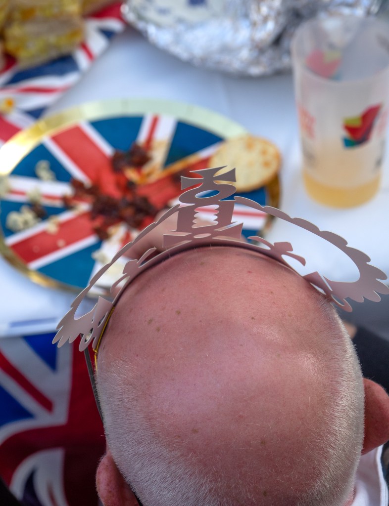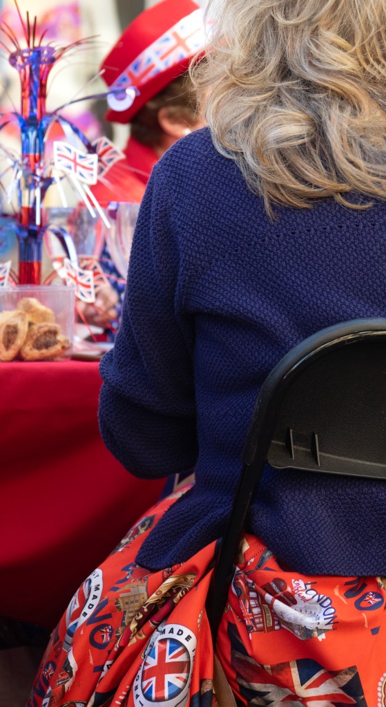 With just over an hour in which to capture the mood of the party, Rosemary and I set to, trying to hone in on small details and mannerisms that could tell the story of the celebrations and the quirkiness of the British public. My photos from the Platinum Jubilee street party last year were a total non-starter, as I think I just got overwhelmed by all of the colour and activity in front of me. Having a clear goal this time, really enabled me to use the short timeframe to the fullest and led to images that even a few months ago I probably wouldn’t have seen. Anyone who dabbles in street photography knows that trying to pre-empt a shot about to happen, ensure there’s nothing distracting in the background and frame your image correctly within a few milliseconds is no mean feat…and practice definitely makes, well maybe not perfect, let’s just say better!