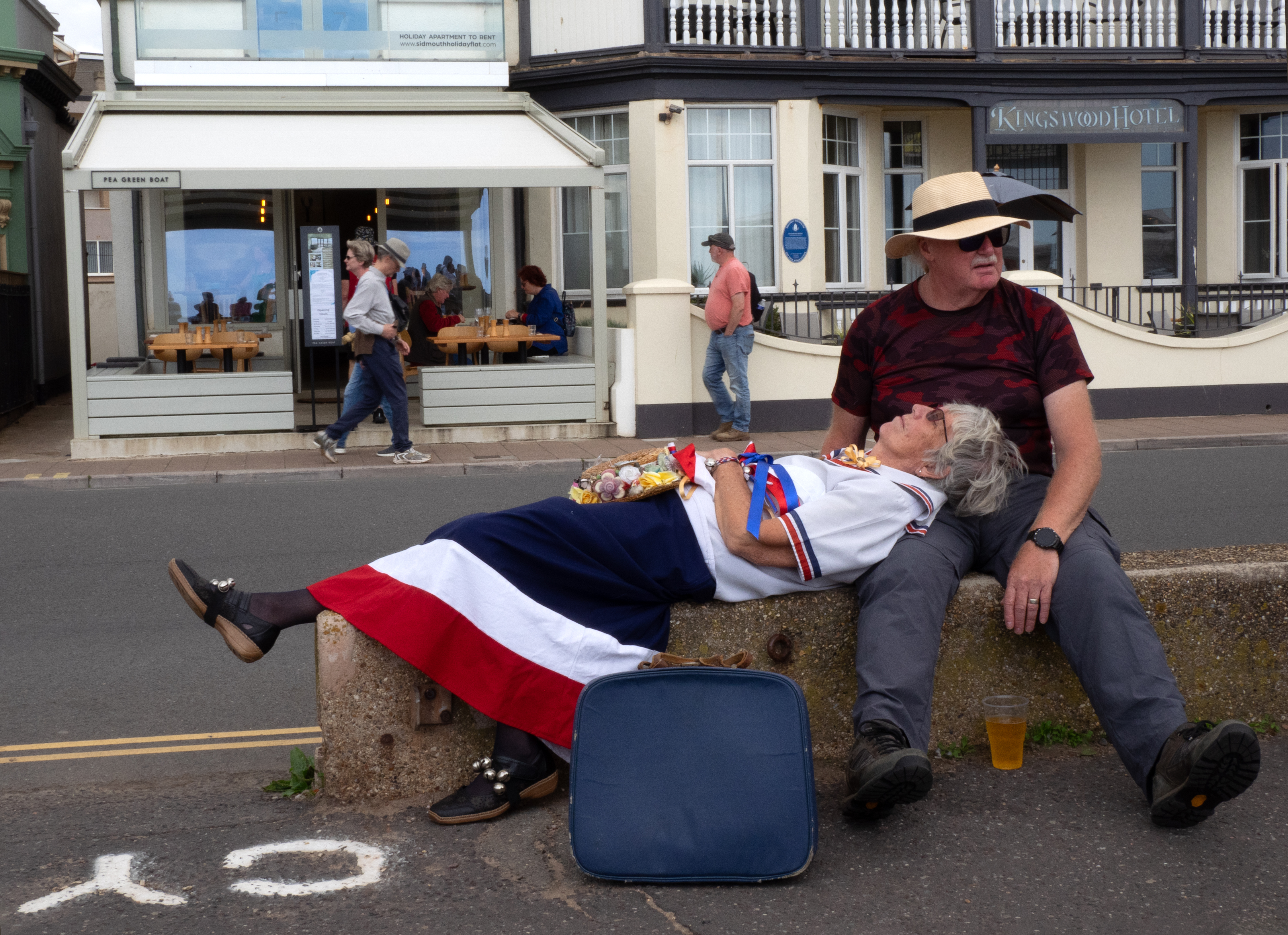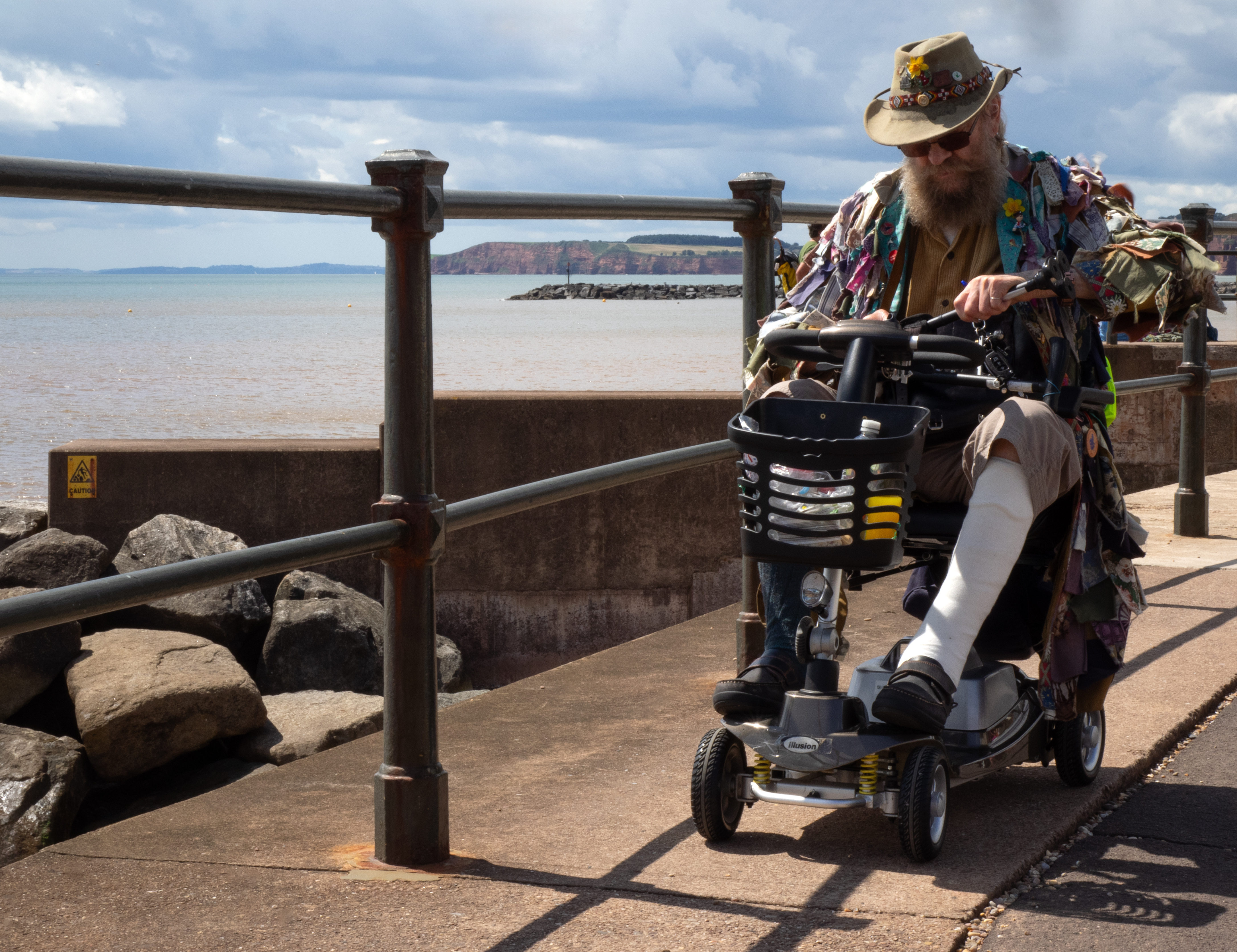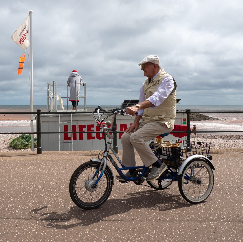 In 2024, Rosemary and I offered to run a Sidmouth Photographic Club summer trip to Teignmouth, which meant that we had to make several recces to choose/sample cafes. In the end we made 3 trips and on each of those I managed to take one or two images that I liked. As always, success is weather dependant…and with street, the luck of the draw who happens to be around at the right time. Had one slightly dodgy experience (entirely my own fault of course)…was eying up a couple of characterful blokes in one of the shelters and from across the road I held my camera at waist height using the back screen to take the shot. But one of the guys clocked me and called me over, asking me rather gruffly if I was taking their photo. I looked surprised and said that no, I’d just got a new camera and had been looking at the screen to see how to change my settings (this was actually true…except that I had pressed the shutter button as well). Thankfully one of the guys used to have a camera back in the day, so we chatted a bit about photography. Then Rosemary wandered up and not knowing what had happened, asked me in front of them if I’d got the shot….arghhh!!! Recommence digging out of hole. I said no, I hadn’t managed to ask them yet if I could take a photo. The older guy was happy for me to take his picture, which is the black and white image further down in the gallery. Blimey, you really do have to be able to talk your way out of trouble when you’re dealing with people!!