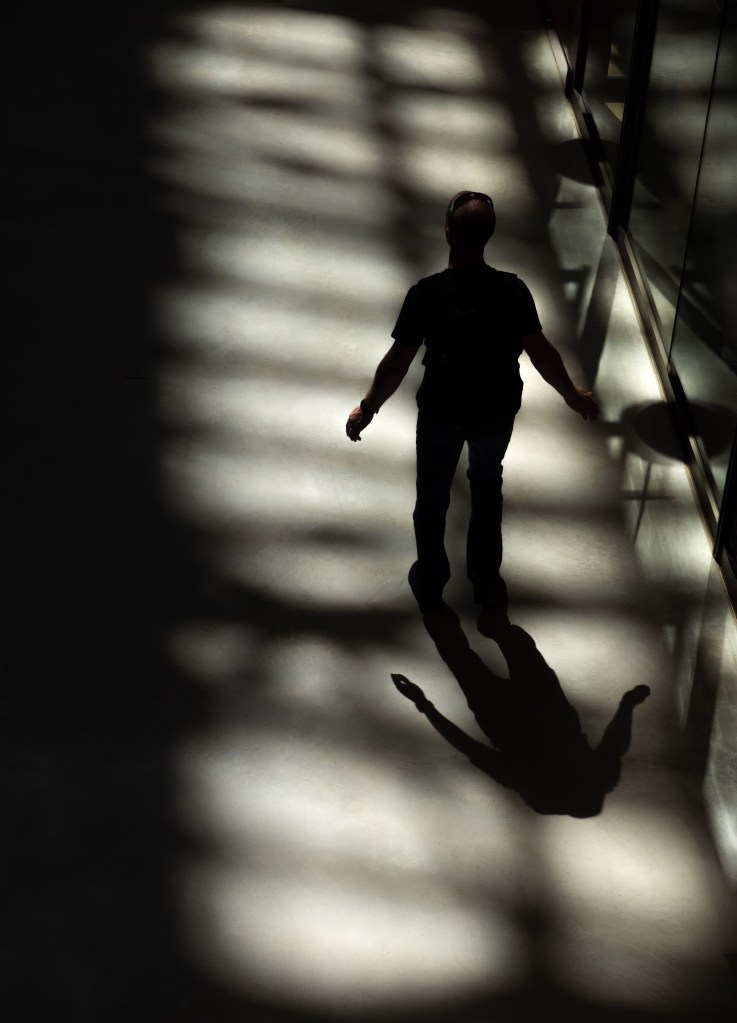 This shot was taken on a trip to the Barbican Centre in London with my Northern Foraging friends in June. Oh what an amazing location for street photography….but the best opportunities come when the sun is out, streaming through the openings, creating interesting shadows. I just loved the curves and light in this composition, even though technically the guy is in the “wrong” position (not on a third) – but I don’t care…it works for me, as I do like a bit of negative space in an image and I darkened it to add a tad more atmosphere.